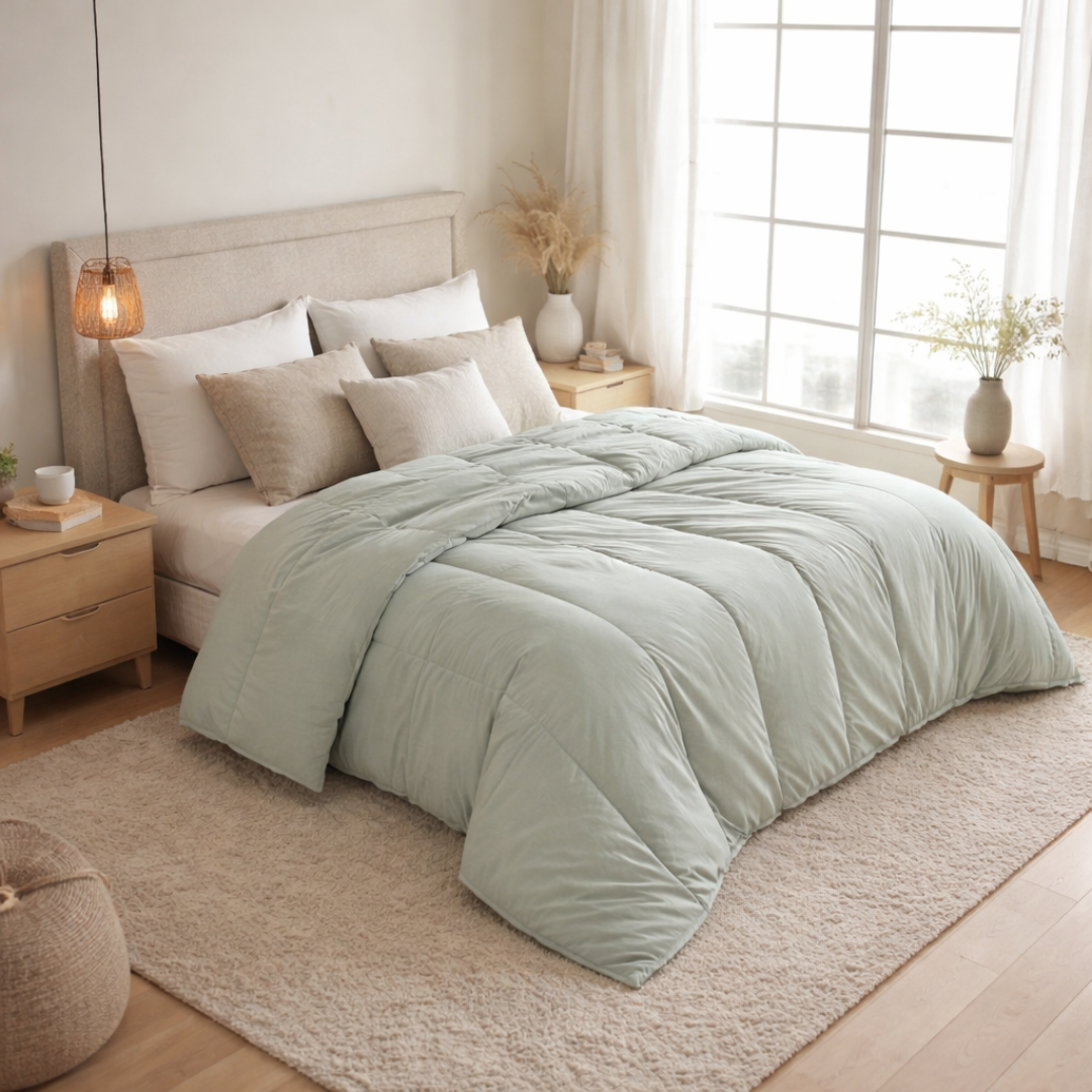 Cada peça é pensada para gerar um impacto real na sua qualidade de vida e na preservação da natureza. Priorizamos matérias-primas seguras para a sua pele e transformamos o seu sono em um ritual de autocuidado e respeito ao amanhã.